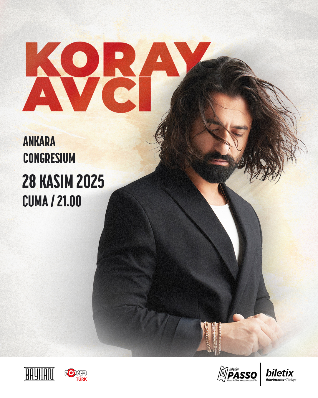 Koray Avcı , Bayhan Müzik organizasyonuyla 28 Kasım akşamı Congresium Ankara sahnesi'nde sizlerle...